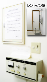 当クリニックでは、デジタル・レントゲン撮影装置を導入しています。 胸部や腹部の写真撮影後、瞬時にモニターでの診断が可能です。また、過去のレントゲン写真との比較もモニター上で簡単に行えます。従来装置に比べると被ばく量も少なくすむ上、フィルムが不必要なため環境にも配慮されています。